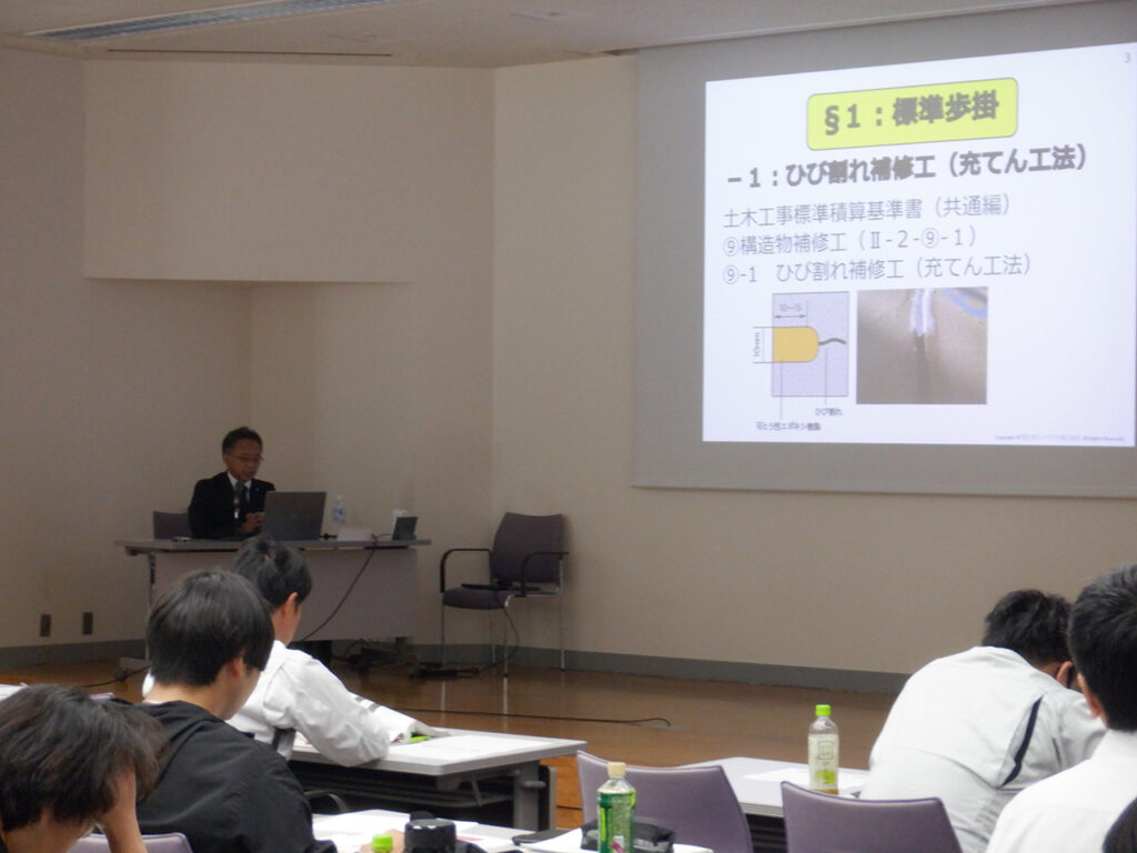 また、工事費や足場数量の算出などを取り上げた演習を交え、橋梁補修に必要な積算技術の理解と実践力の向上を目的として行いました。